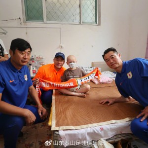7月14日讯 据山东泰山足球俱乐部官博报道,今天下午俱乐部副总经理宿茂臻、教练组组长韩鹏与队员王大雷一行看望了患病的8岁...