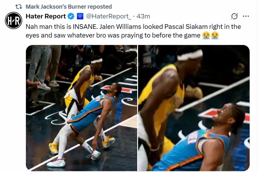 比赛中,杰伦·威廉姆斯直视西亚卡姆眼睛的一幕被美国媒体恶搞:不,这太疯狂了!杰伦·威廉姆斯直视着西亚卡姆的眼睛,看到了兄弟赛前祈祷的那个东西。